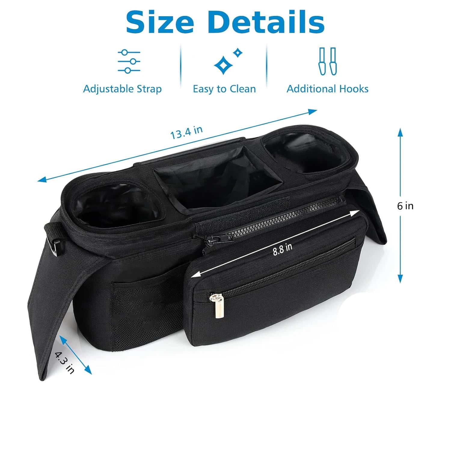 [Versatile Bag] With a detachable wristlet pocket to take your most needed items with you. You can also remove the entire organizer from the stroller and wear it over your shoulder using the included straps.