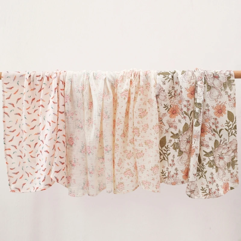 Soft Baby Blanket: The soft baby swaddle blanket designed with beautiful floral pattern, gauze cotton, comfortable and neutral gender can easily pack you little baby, super soft- material keep your baby comfortable.